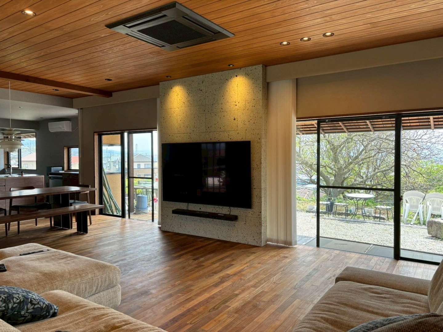 最後に、縁側をイメージした床のレイアウトについてお話します。縁側は、日本家屋の中でも特に和と洋の境界線にある空間です。この要素を取り入れることで、和モダンな雰囲気を演出できます。